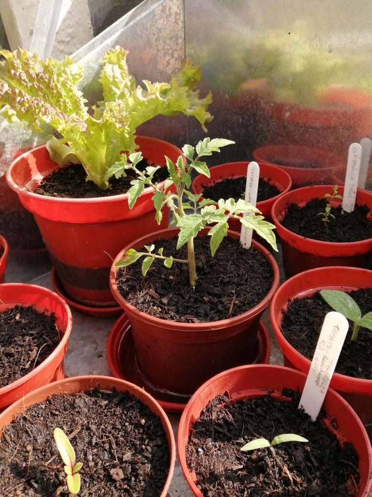 Herbs are best grown on from young plants, they can be difficult to nurture from seed though it’s always worth a try and I’ve had success with growing Thyme this year, by keeping the pot covered with cling film until the shoots are a few mm tall. Chives are another good option, they grow quite easily from seed and if you harvest them regularly by cutting close to the base, it will encourage new growth. Most herbs can be sown the same as salad and once the seedlings are a few mm tall and look strong, can be transplanted into individual pots. Depending on their origin, different herbs like different levels of heat, for example, Thyme is a Mediterranean plant and so loves direct sunlight and minimal watering.